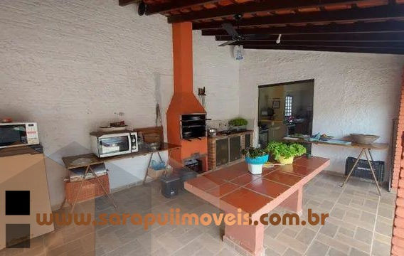 Casa: 3 dormitórios (1 suíte), sala, cozinha, 1 wc, piscina aquecida, bar molhado, varanda, área c/ churrasqueira, capela, anexo + 4 suítes, poço artesiano.